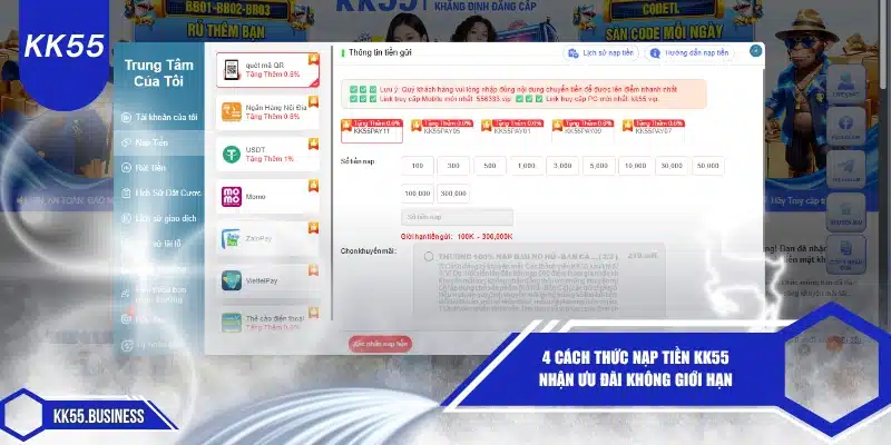 4 phương thức nạp tiền KK55 đang hỗ trợ